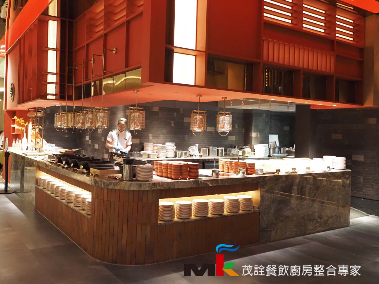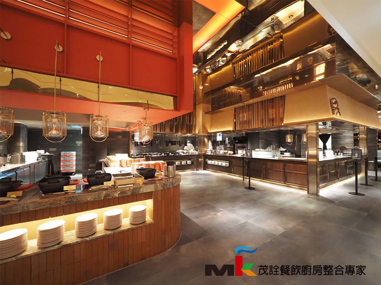 • 分區 | 洗碗區、麵包廚房區、中央廚房&處理區&冷藏庫、日料區&串燒油炸區、異國料理區&鐵板燒區、中式料理區&西式料理區、水果區&點心區&飲料吧檯、回收室