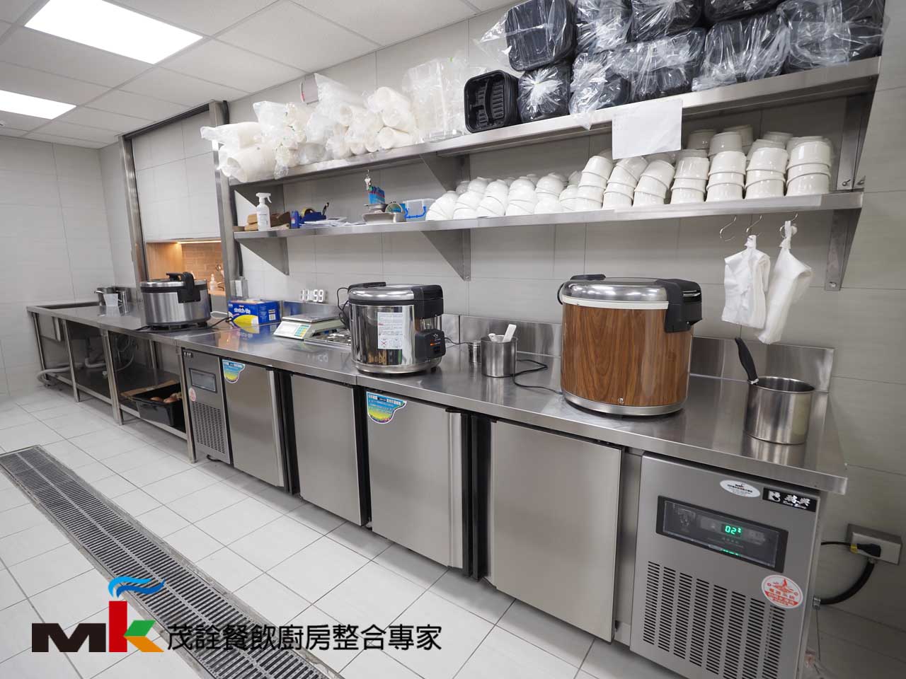 櫥櫃工作台、崁入式單水槽、工作台冷藏冰箱、桌上型開水機、工作台/下層板、雙層壁架、沙拉工作台冷藏冰箱、電子炊飯保溫鍋、水槽工作台/下層板、四半門立式冷凍冰箱、四半門立式冷藏冰箱、雙層上架、微波爐、保溫櫥櫃工作台、簡易型煙罩滅火系統、雙口中式鼓風爐、西式四口爐/下櫥櫃、煎板爐/下櫥櫃、碳烤爐、油炸機、萬能蒸烤箱11盤、蒸烤箱置台、濾網式油煙罩、刀具消毒櫃、三連水槽、洗碗機前工作台/雙水槽、碗籃壁架、預洗噴槍、掀門式洗碗機、洗碗機排汽罩