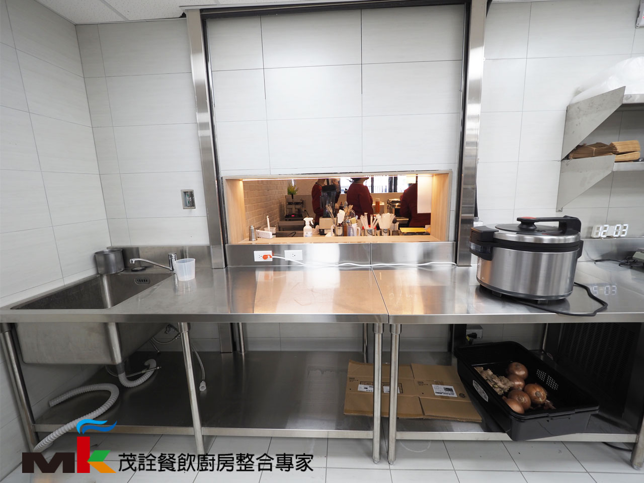 《出餐區》工作台/下層板、雙層壁架、沙拉工作台冷藏冰箱、電子炊飯保溫鍋、水槽工作台/下層板