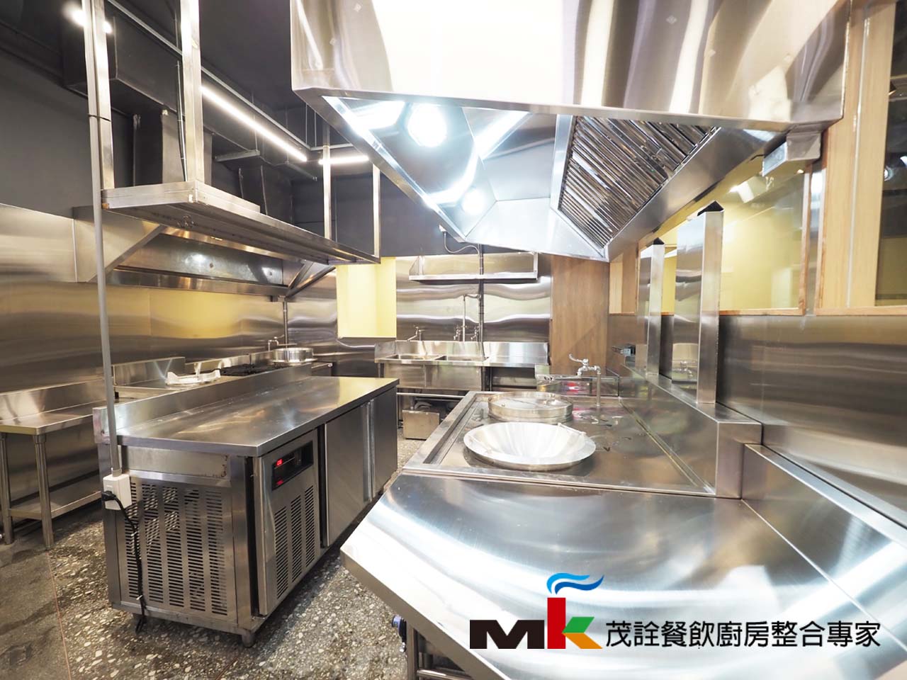 考量高峰時段集中客流,採用中央備料、快速出餐動線與大型排煙系統,並搭配大量冷藏、保溫設備,提高出餐效率與品質控制。