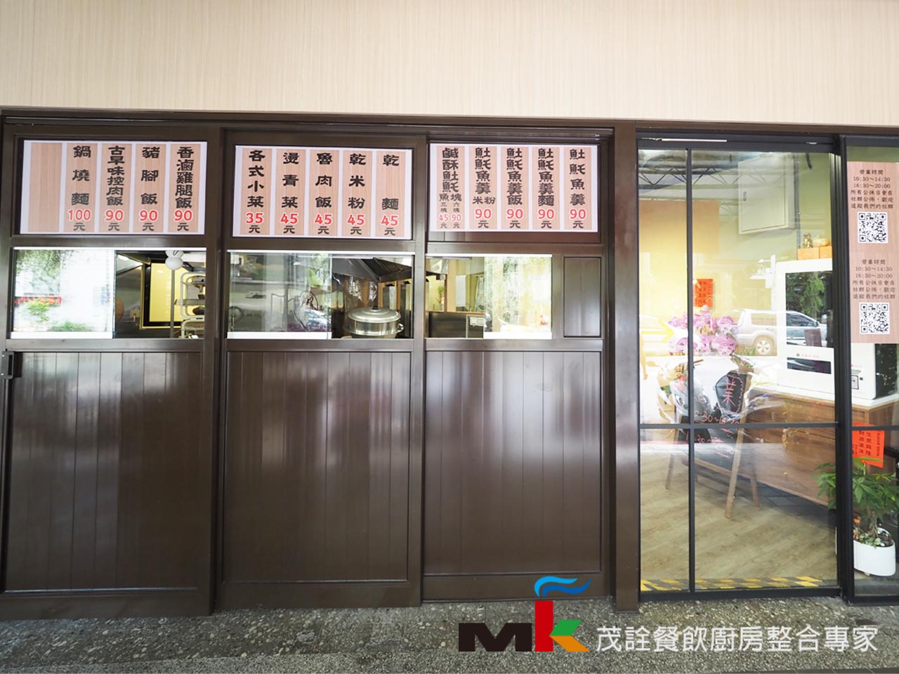 規劃廚房作業設備及動線,採用半開放式廚房的土魠魚羹麵食美味餐廳。